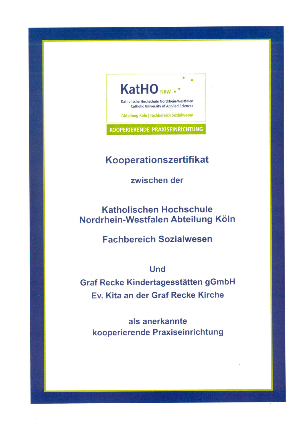 Die Ev. Kindertagesstätte an der Graf-Recke-Kirche gehört zur Graf-Recke-Kindertagesstätten gGmbH, eine Tochtergesellschaft der Graf Recke Stiftung. Zu ihr gehören mehrere Kindertageseinrichtungen in Düsseldorf und in Mülheim an der Ruhr.